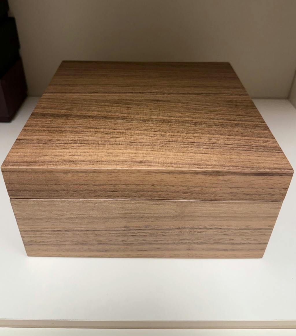 Received the light walnut/glass lid version as a very considerate anniversary gift from my wife - I couldn't be happier. This is the classiest, best constructed, most beautiful watch box I've encountered. Many will opt for Wolf boxes for high quality options, but this wooden Tawbury option is even better. The materials are premium, the box comes with great heft, a real glass lid (no fake plastic here), and cushions that are held firmly in place so they don't rock around inside. Additionally, the push button hinge system is brilliant and I love the felt applied to the bottom of the box to prevent scratches to my furniture and the box.